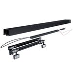 O sistema Coplanar C-1000 Automático funciona de forma semelhante às portas de vans: a porta se desloca levemente para frente e depois desliza lateralmente para abrir. No fechamento, o movimento é invertido, com retorno automático que a mantém alinhada ao batente.
